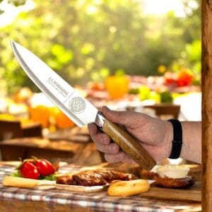 • Aço Inoxidável Premium: Forjada em aço inoxidável de alta resistência, a lâmina garante durabilidade, resistência à corrosão e um fio de corte preciso e duradouro.