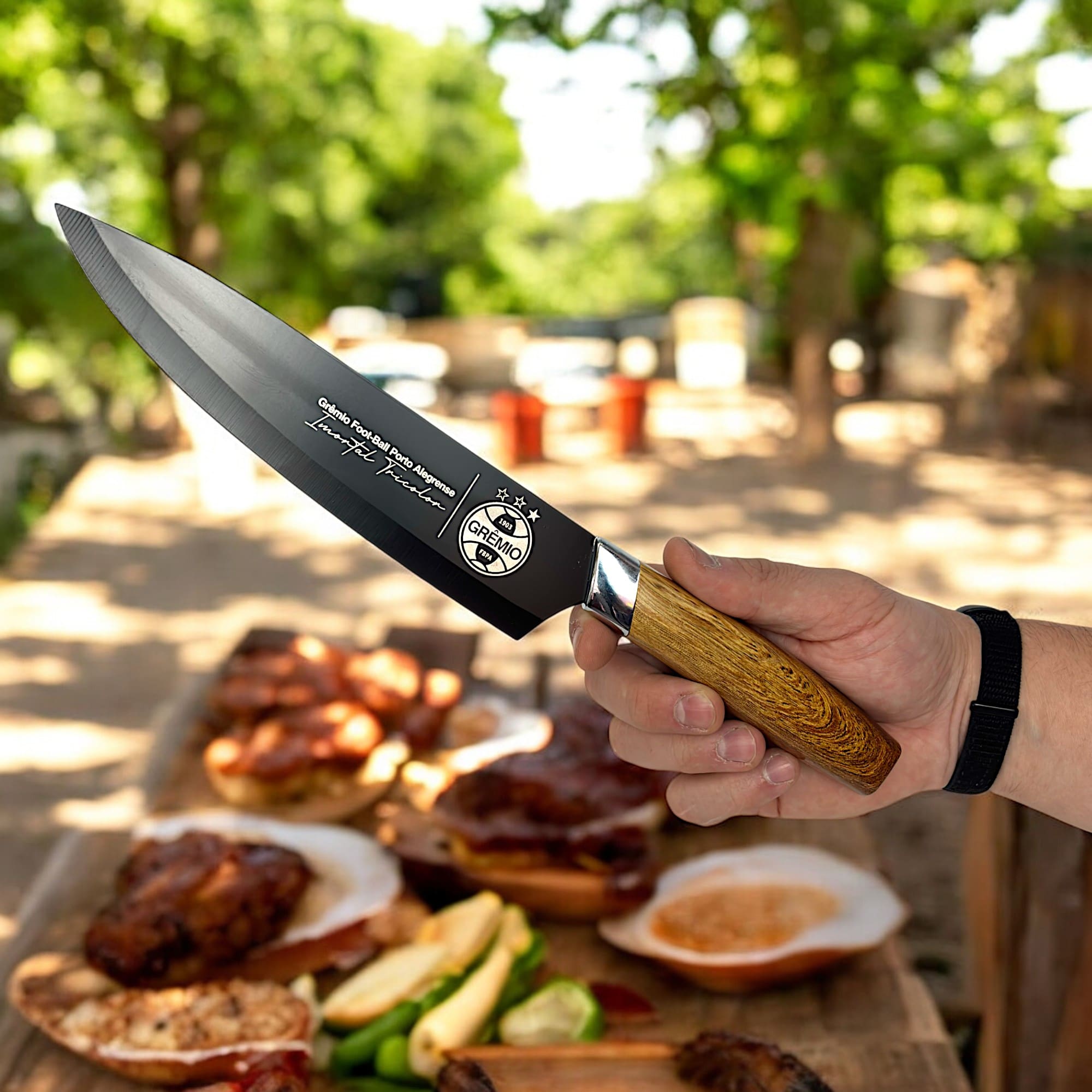 Uma obra-prima da cutelaria, projetada para os apreciadores de facas que buscam um instrumento de corte excepcional, durabilidade incomparável e um design único que celebra a paixão tricolor.