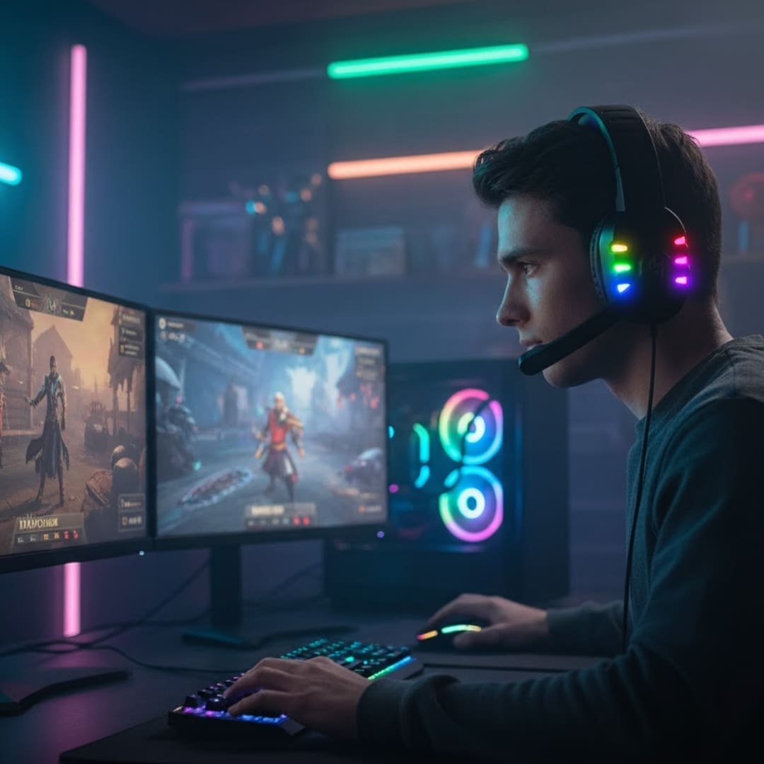 Headset Gamer com som de alta qualidade, microfone omnidirecional e design arrojado com LEDs coloridos para um setup de respeito.