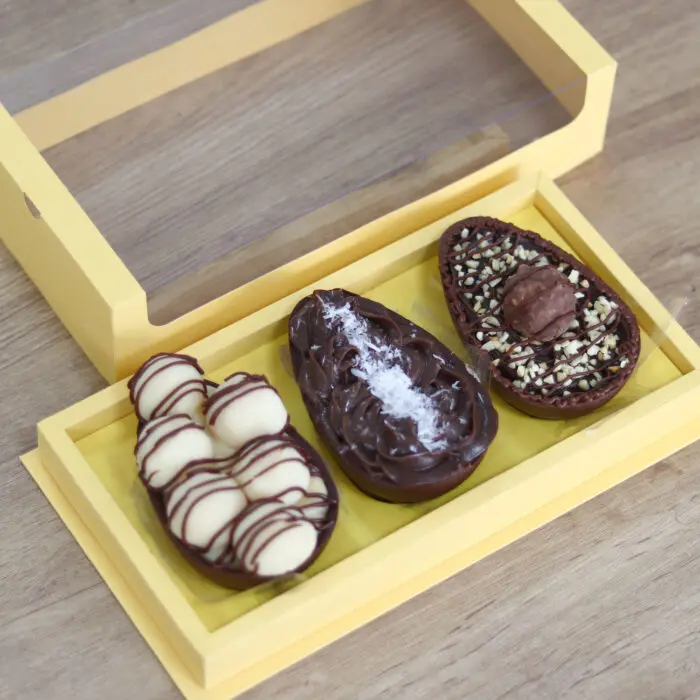 • Facilidade de Uso: O material flexível do acetato facilita a remoção do chocolate, resultando em ovos com superfície lisa e brilhante.
