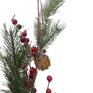 O galho de pinheiro com pinha da Wincy é um enfeite natalino que traz a beleza e o aroma da natureza para dentro de casa. Ideal para quem busca uma decoração natalina mais rústica e elegante, esse galho é versátil e pode ser utilizado em diversos tipos de arranjos.