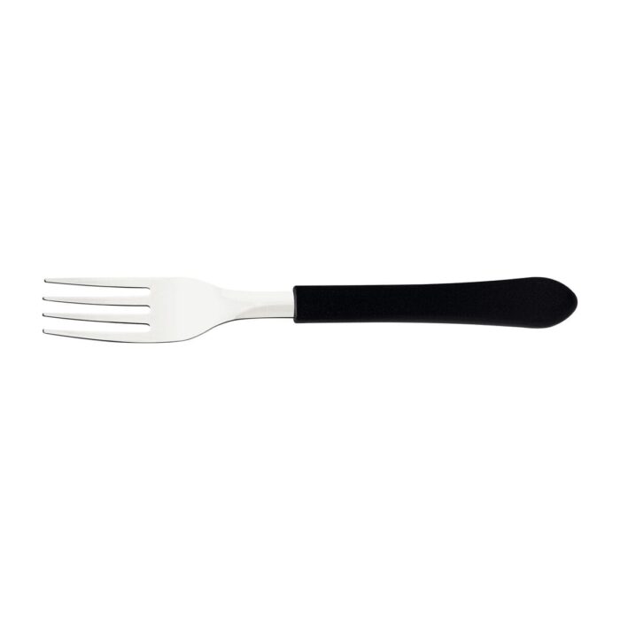 Com o garfo de mesa Tramontina Leme com lâmina em aço inox e cabo de polipropileno.