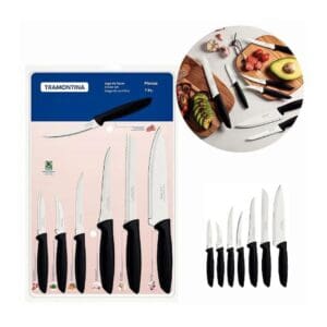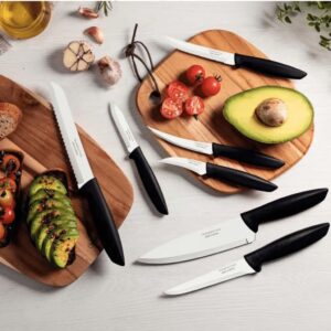 Normalmente, um jogo de facas Tramontina Plenus 7 peças inclui as seguintes facas: