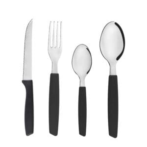 • Qualidade e Durabilidade: Produzidos em aço inox de alta qualidade, os talheres garantem resistência e durabilidade, não enferrujam e são fáceis de limpar. Os cabos de plástico, além de ergonômicos, são resistentes e oferecem um toque suave e seguro durante o uso.