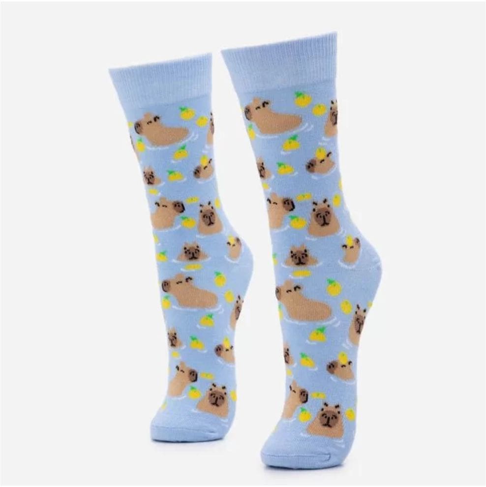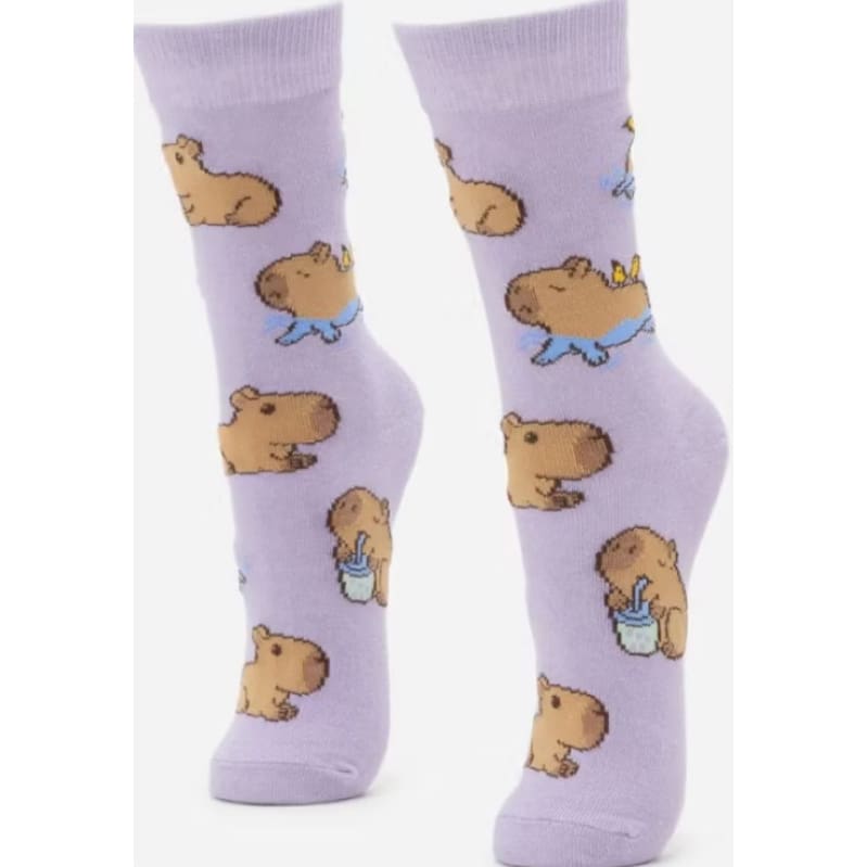 Este conjunto encantador combina conforto, qualidade e um design super original que as crianças vão amar. Cada par de meias apresenta uma adorável estampa de capivara, o bichinho queridinho da internet, em diferentes poses e detalhes charmosos.
