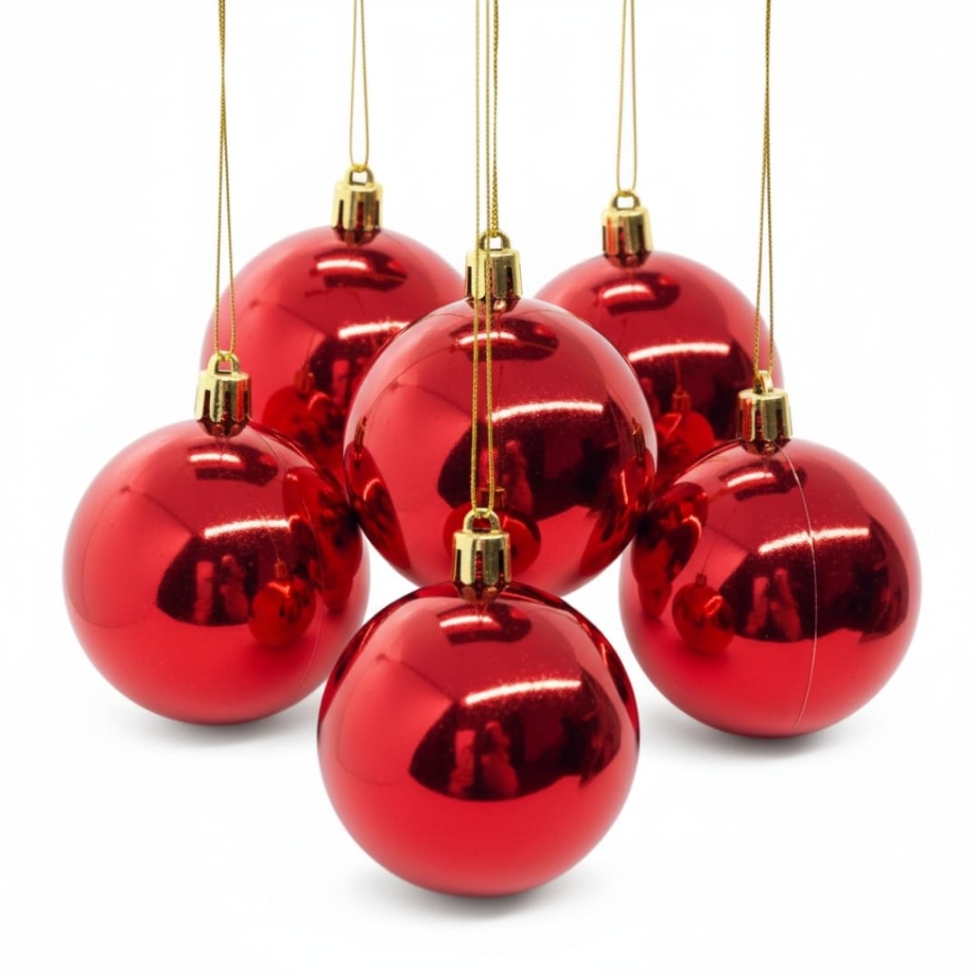 Seis bolinhas de 4cm, prontas para dar brilho e cor à sua decoração natalina.