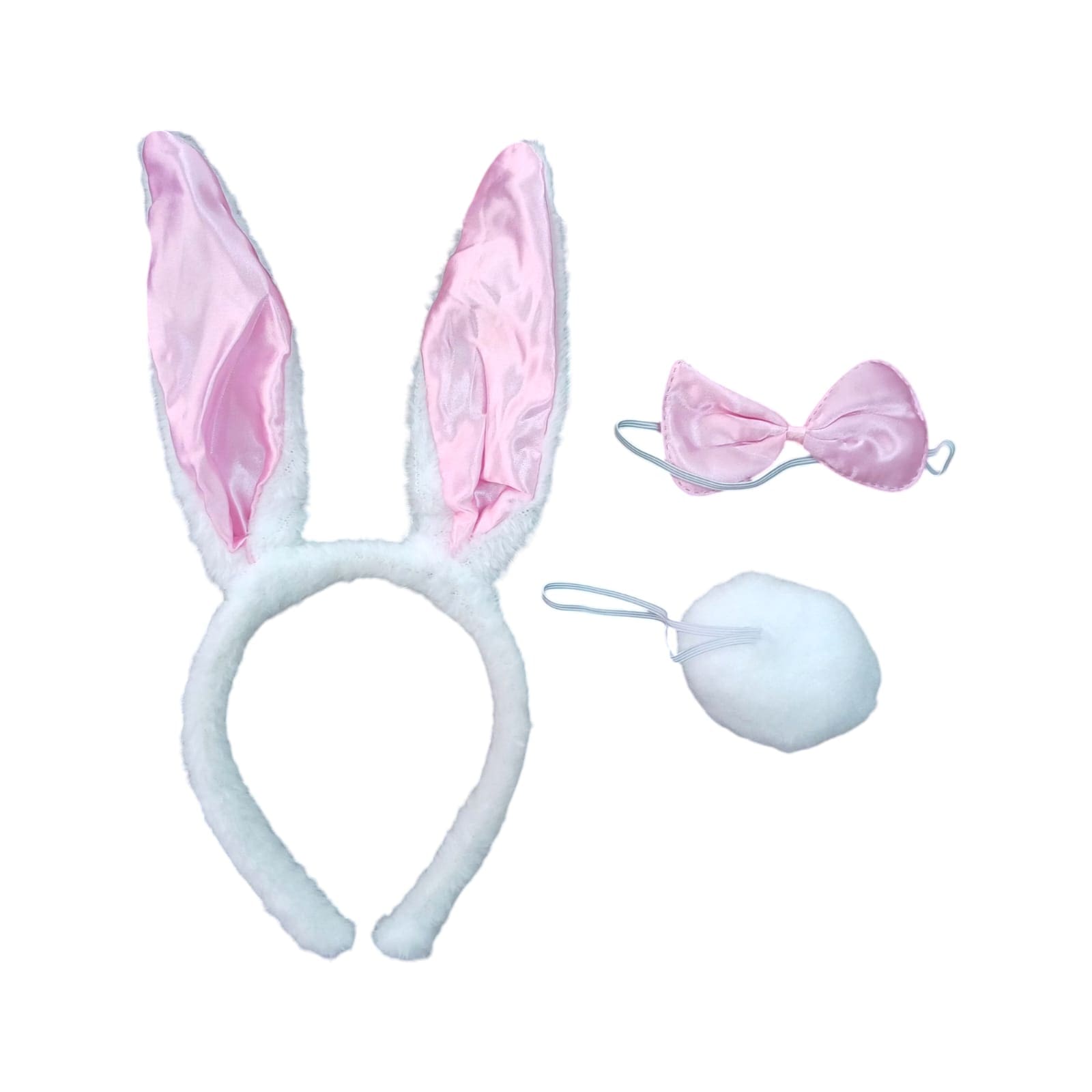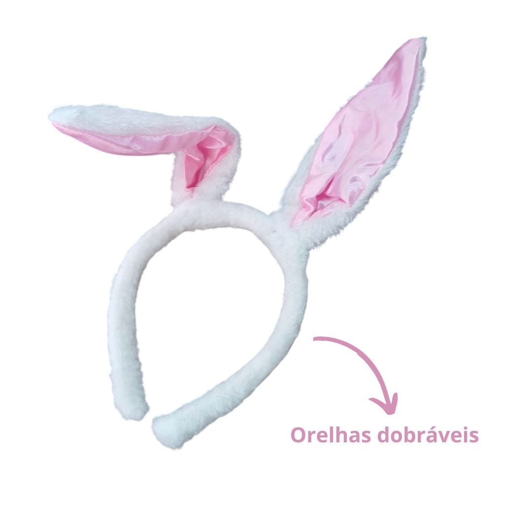 - Tiara com Orelhas de Coelhinho: Leve e confortável, a tiara se ajusta facilmente à cabeça, proporcionando um visual fofo e autêntico. As orelhas de coelho, macias e com acabamento impecável, são o destaque do conjunto.