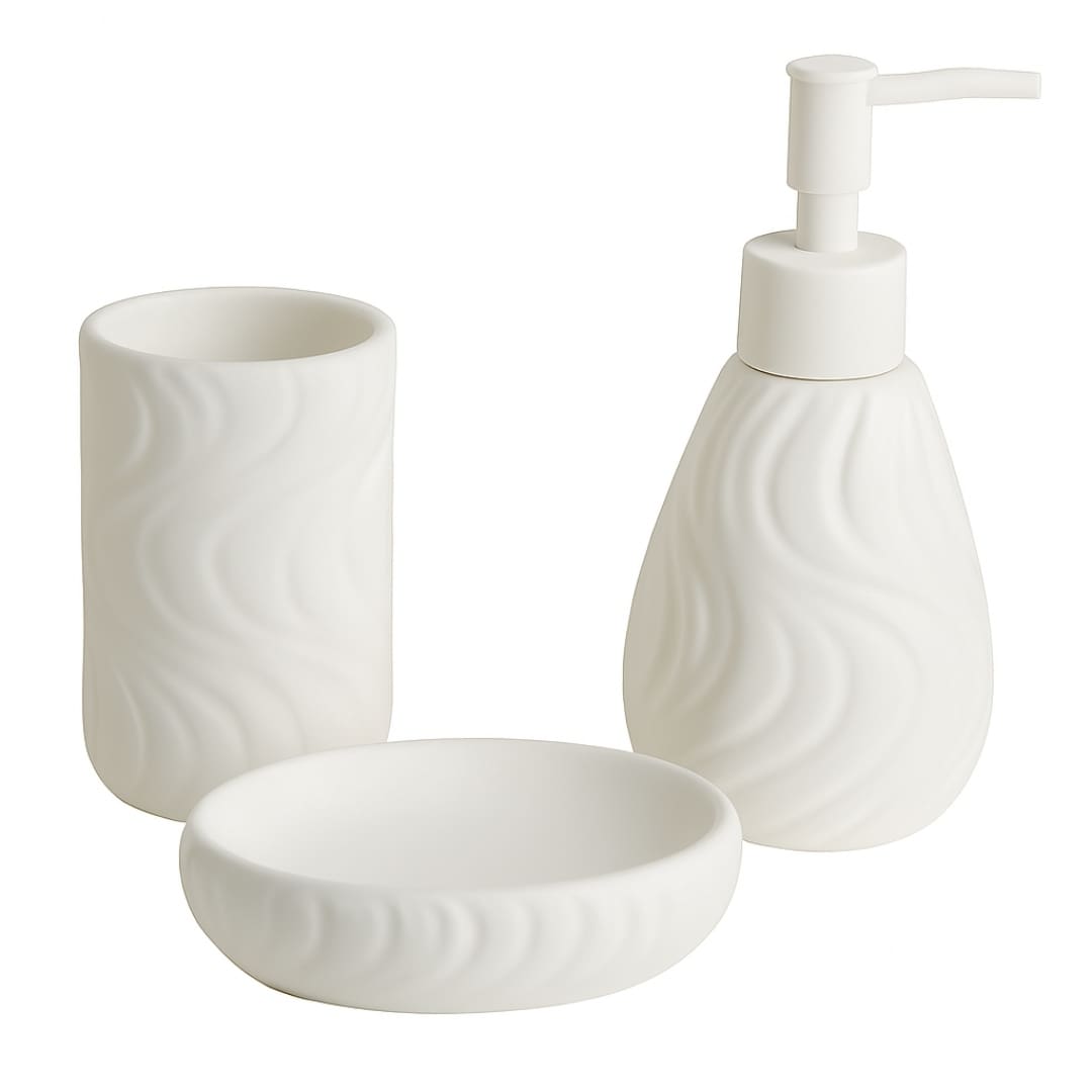 Transforme o visual do seu banheiro com o Kit Malta da Casa Aurora, composto por três peças em porcelana de alta qualidade. Com acabamento elegante e textura ondulada, esse conjunto une beleza e praticidade para o dia a dia.