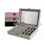 Estojo/Porta Joias Oragnizador com Divisórias e Tampa Transparente Aveludado 20x15x5cm Sortido