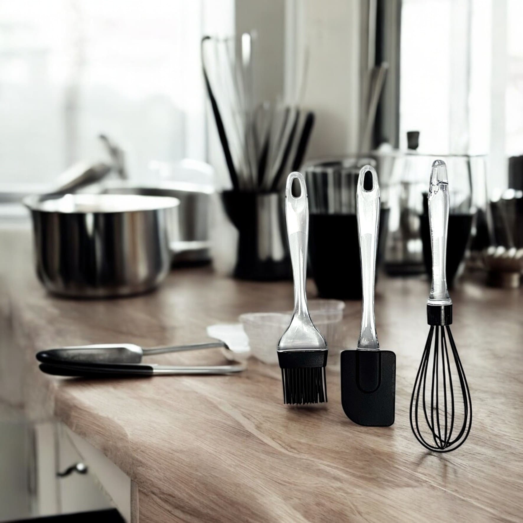 Composto por uma espátula, um pincel e um fouet, todos os utensílios são feitos de silicone de alta qualidade, resistente a altas temperaturas e fácil de limpar.