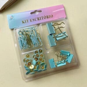 - Diversidade de itens: Cada kit possui uma variedade de itens essenciais para o dia a dia no escritório, como clips de diferentes tamanhos, grampeadores, tachinhas, alfinetes e muito mais.
