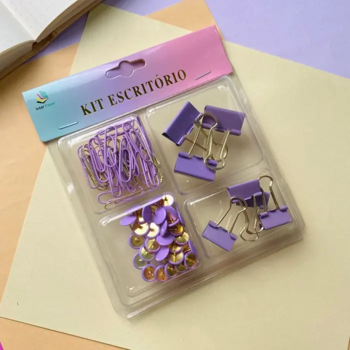 - Diversidade de itens: Cada kit possui uma variedade de itens essenciais para o dia a dia no escritório, como clips de diferentes tamanhos, grampeadores, tachinhas, alfinetes e muito mais.
