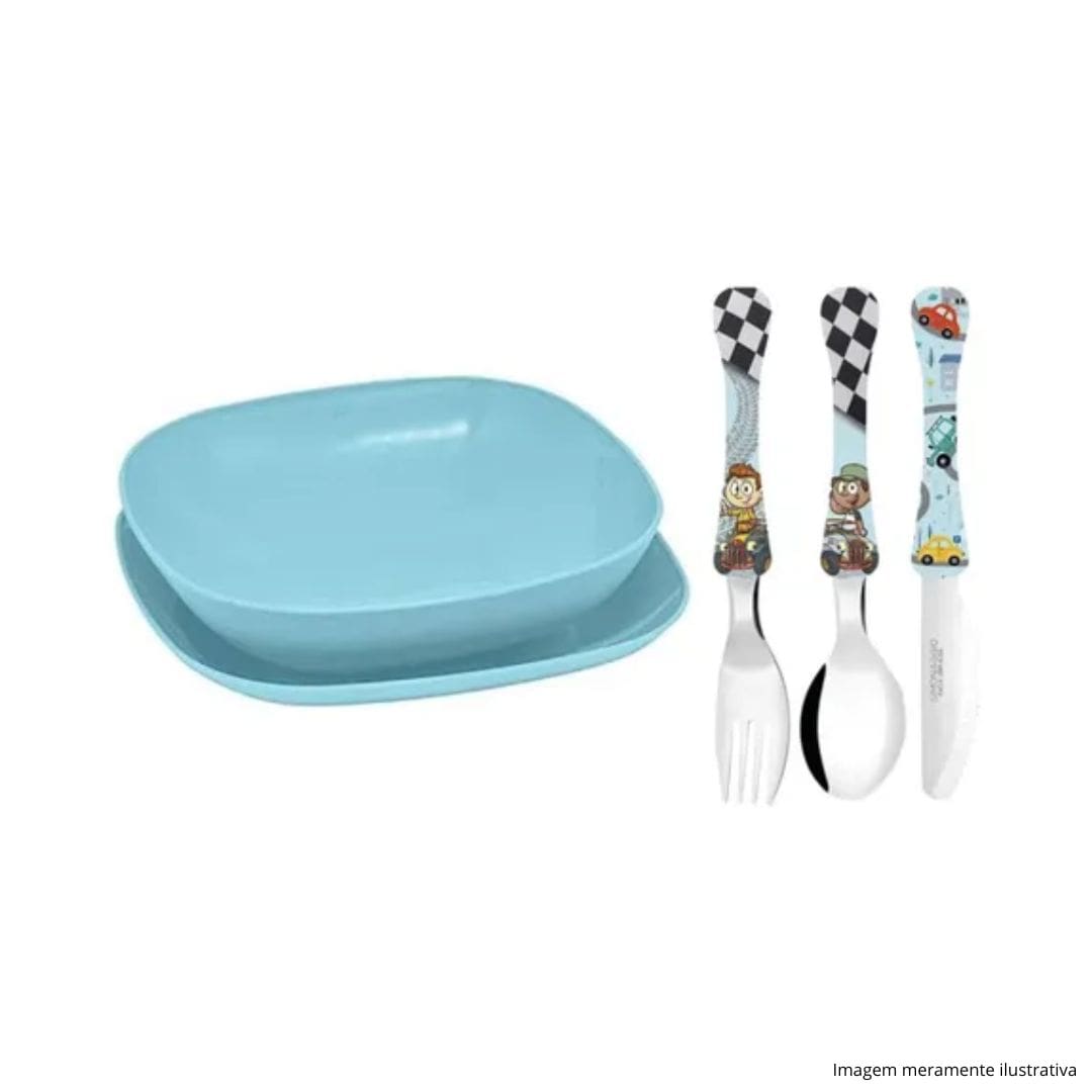 Kit Prato com Talheres Kids Trend 5 Peças Carrinhos – Simonaggio: Aventura e Sabor na Hora da Refeição!