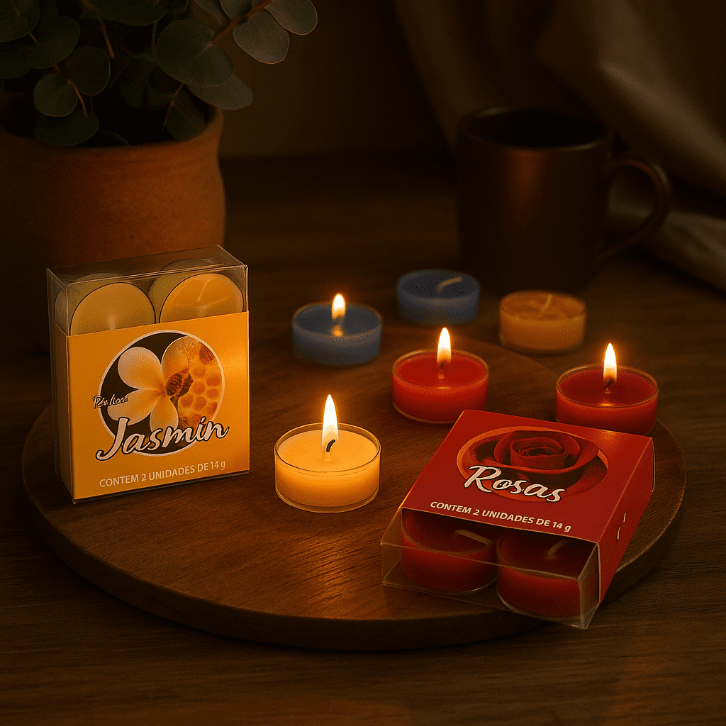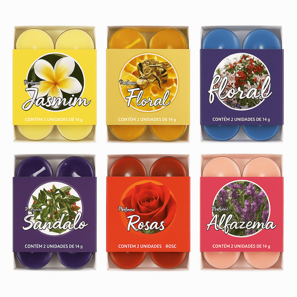 Cada vela, com 14g, é perfeita para criar um ambiente acolhedor, relaxante e convidativo em qualquer ocasião.
