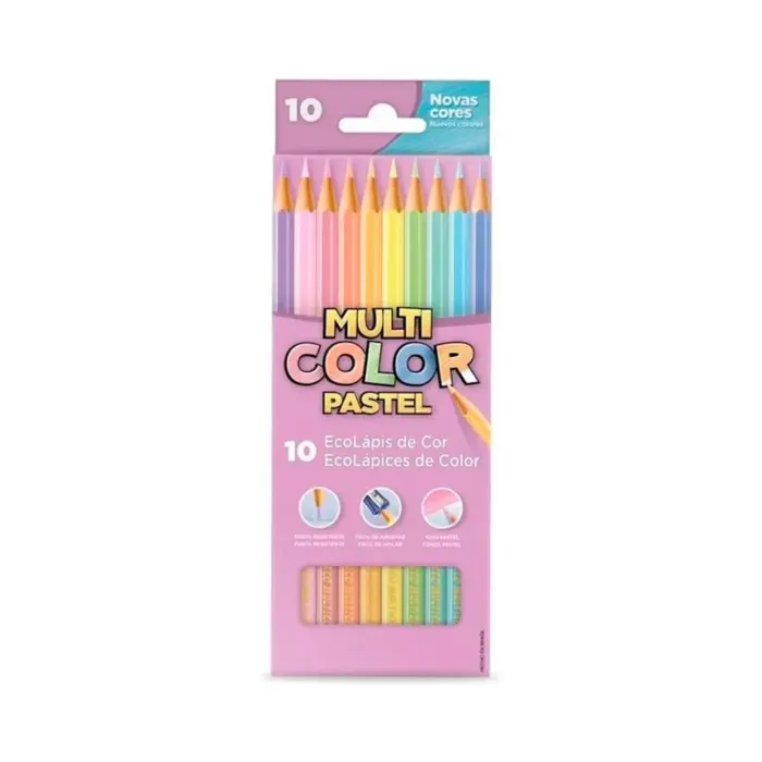 Lápis de Cor Ecolápis Cor Pastel 10 Cores – Multicolor: Uma explosão de cores suaves para suas criações!