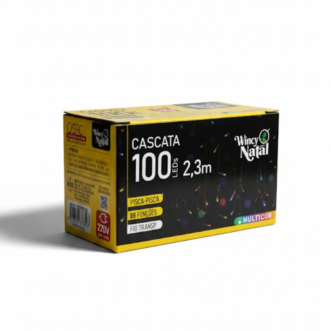 Este conjunto possui 100 lâmpadas de LED que brilham em diversas cores vibrantes (multicor), distribuídas em uma área de 2,3 metros de comprimento. O grande diferencial é o controle com 8 funções de pisca-pisca, permitindo que você escolha o ritmo perfeito para a sua celebração, desde um piscar dinâmico até a luz contínua. Feito com material resistente e de baixo consumo de energia, a Cascata Multicor da Wincy é fácil de instalar e garante uma iluminação colorida, segura e duradoura.