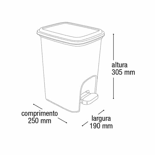 Sistema de pedal para abertura da tampa, de forma mais higiênica, evitando o contato com o lixo.