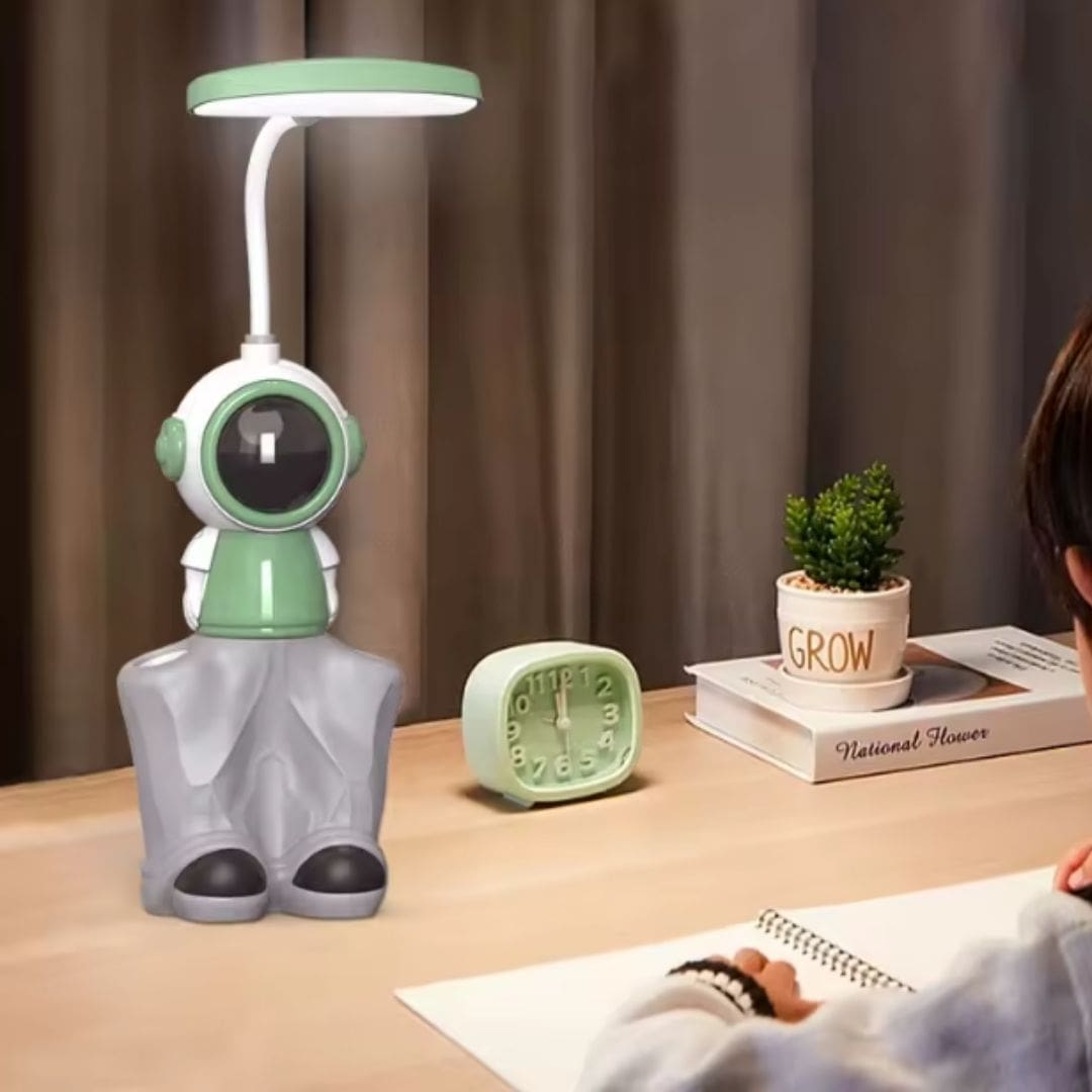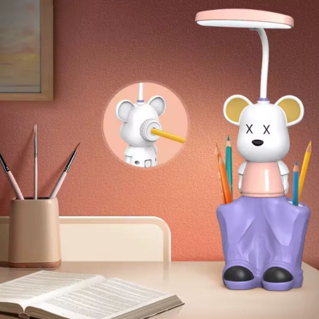 • Organização Integrada: Mais do que uma luminária, ela integra um prático porta-lápis, mantendo canetas, lápis e outros materiais de escrita sempre à mão e organizados. Além disso, conta com um apontador embutido, garantindo que suas ferramentas de escrita estejam sempre prontas para uso.