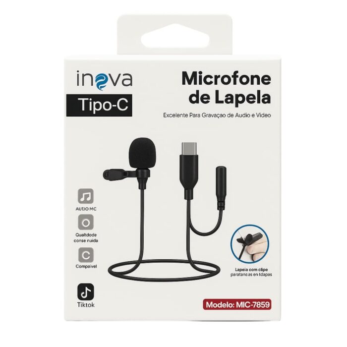 - 1 Microfone de Lapela Inova com Conexão USB-C.