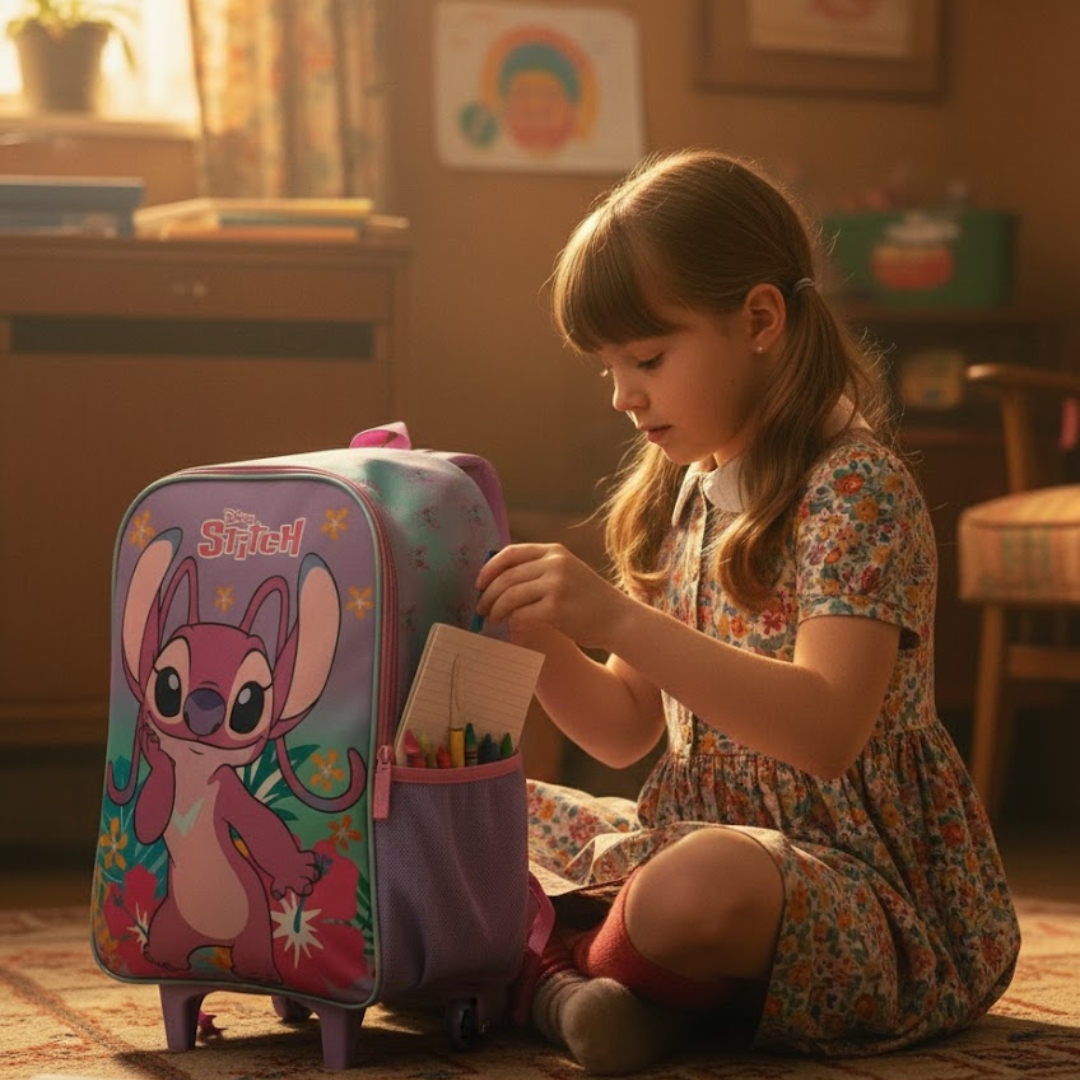 A Mochila de Rodinhas Stitch Roxo da LUXCELL é um acessório escolar de grande capacidade, projetado para o público infantil e juvenil que precisa de uma solução prática para o transporte de materiais pesados, minimizando o esforço físico.