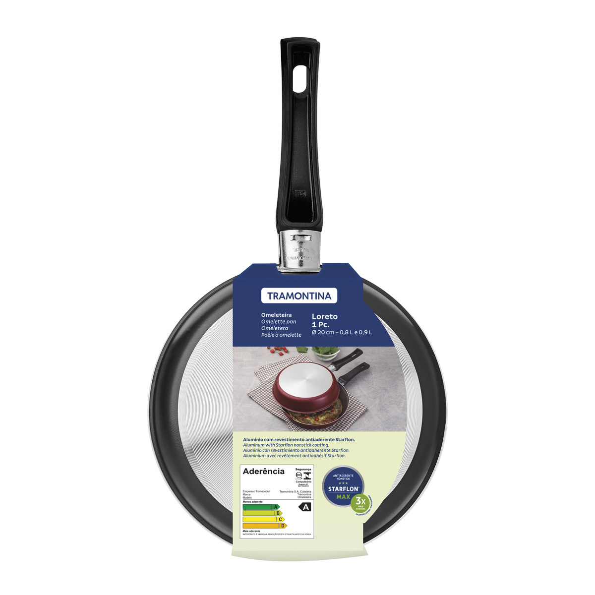 A Omeleteira Loreto da Tramontina é a ferramenta definitiva para o seu café da manhã. Composta por duas metades de 20 cm que se encaixam, ela garante omeletes redondos e fofinhos com facilidade. Seu corpo em Alumínio proporciona cozimento rápido e uniforme, e o revestimento interno Antiaderente Starflon Max assegura que nada grude, facilitando a virada e a limpeza. Os cabos em Baquelite oferecem um manuseio seguro, pois não aquecem. A qualidade e a tradição da Tramontina na sua cozinha!