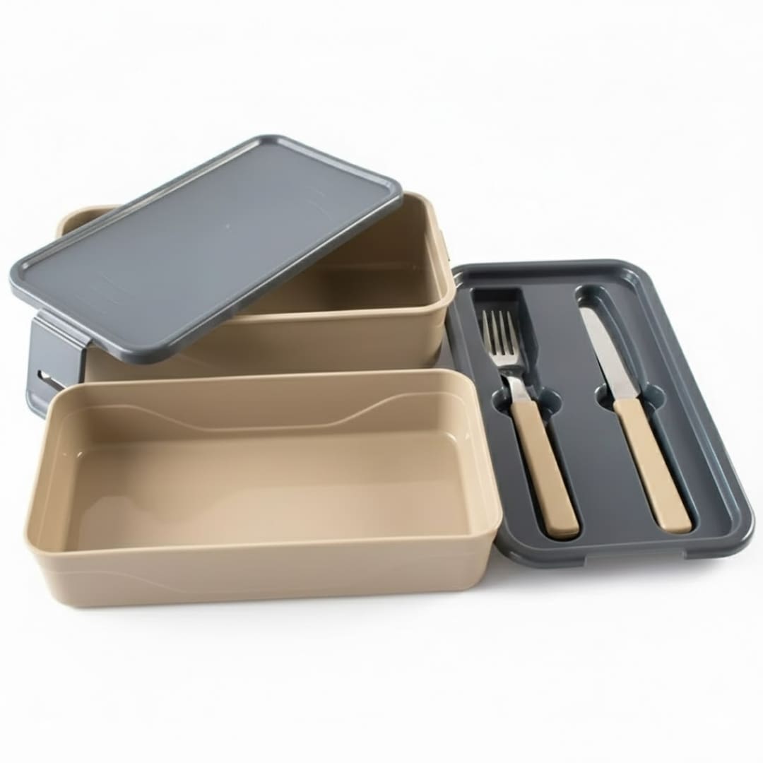 O grande diferencial é o compartimento inteligente que acompanha um conjunto de talheres (geralmente garfo e faca ou colher), eliminando a necessidade de levá-los separadamente. A tampa com vedação garante o fechamento hermético, conservando o frescor e prevenindo vazamentos na sua bolsa. O formato otimizado permite o empilhamento e o armazenamento eficiente. É o acessório essencial para quem preza por organização, saúde e conveniência no dia a dia.