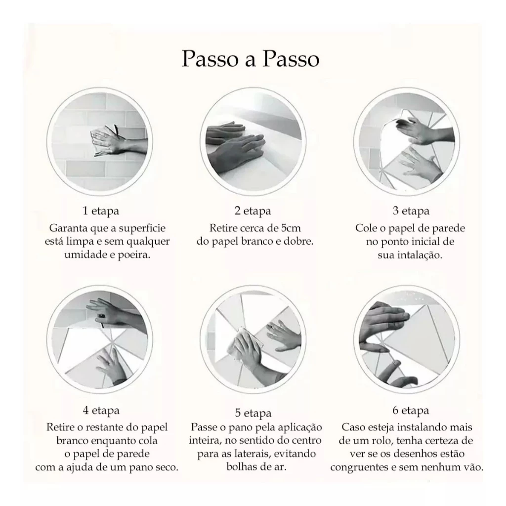 • Fácil aplicação: O papel de parede é autoadesivo, dispensando o uso de cola e facilitando a instalação.