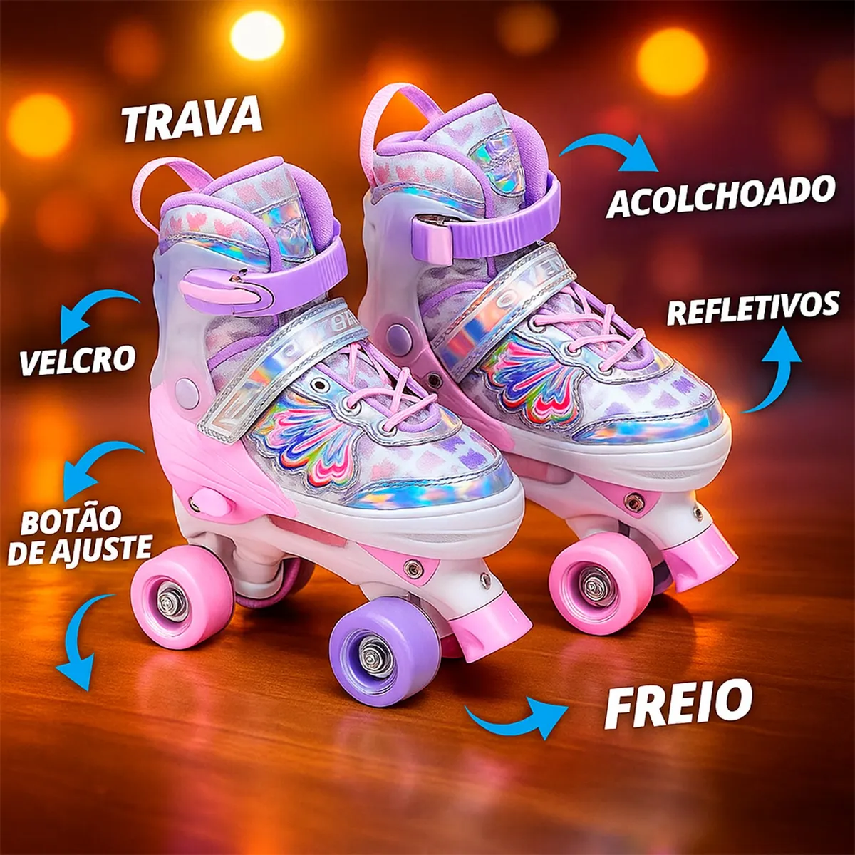 Desenvolvido especificamente para crianças que estão iniciando na patinação, oferecendo máxima estabilidade e equilíbrio, facilitando a aprendizagem. O tema principal é a Borboleta, apresentando cores vibrantes e gráficos lúdicos que atraem o público infantil.