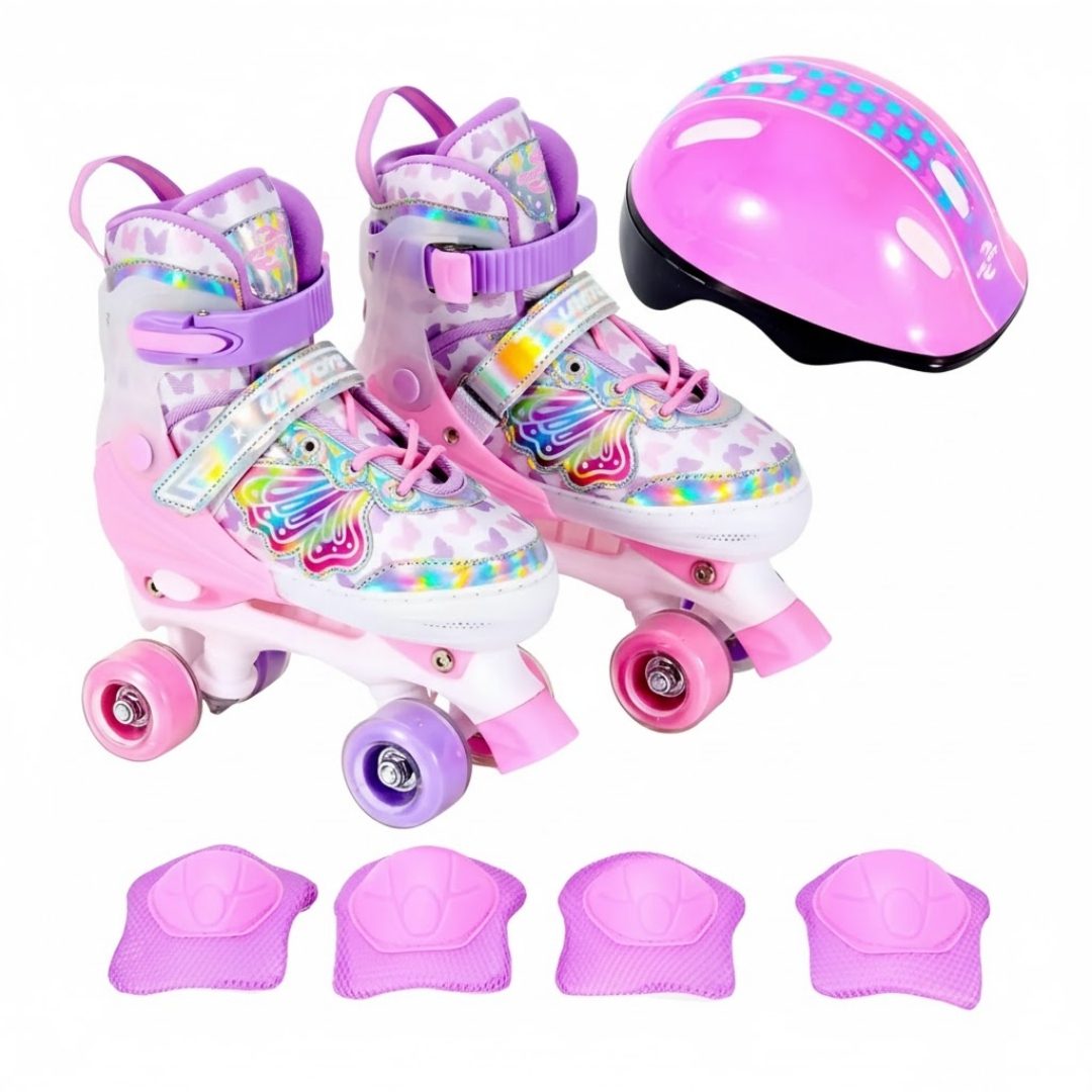 Patins Quad Borboleta Tamanho 30-33 com Acessórios de Segurança – Unitoys