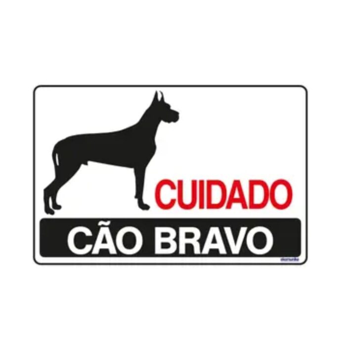 - Design Visível e Impactante: O contraste das cores e o ícone de cão bravo são pensados para atrair a atenção rapidamente, reforçando a segurança do local e evitando situações de risco.
