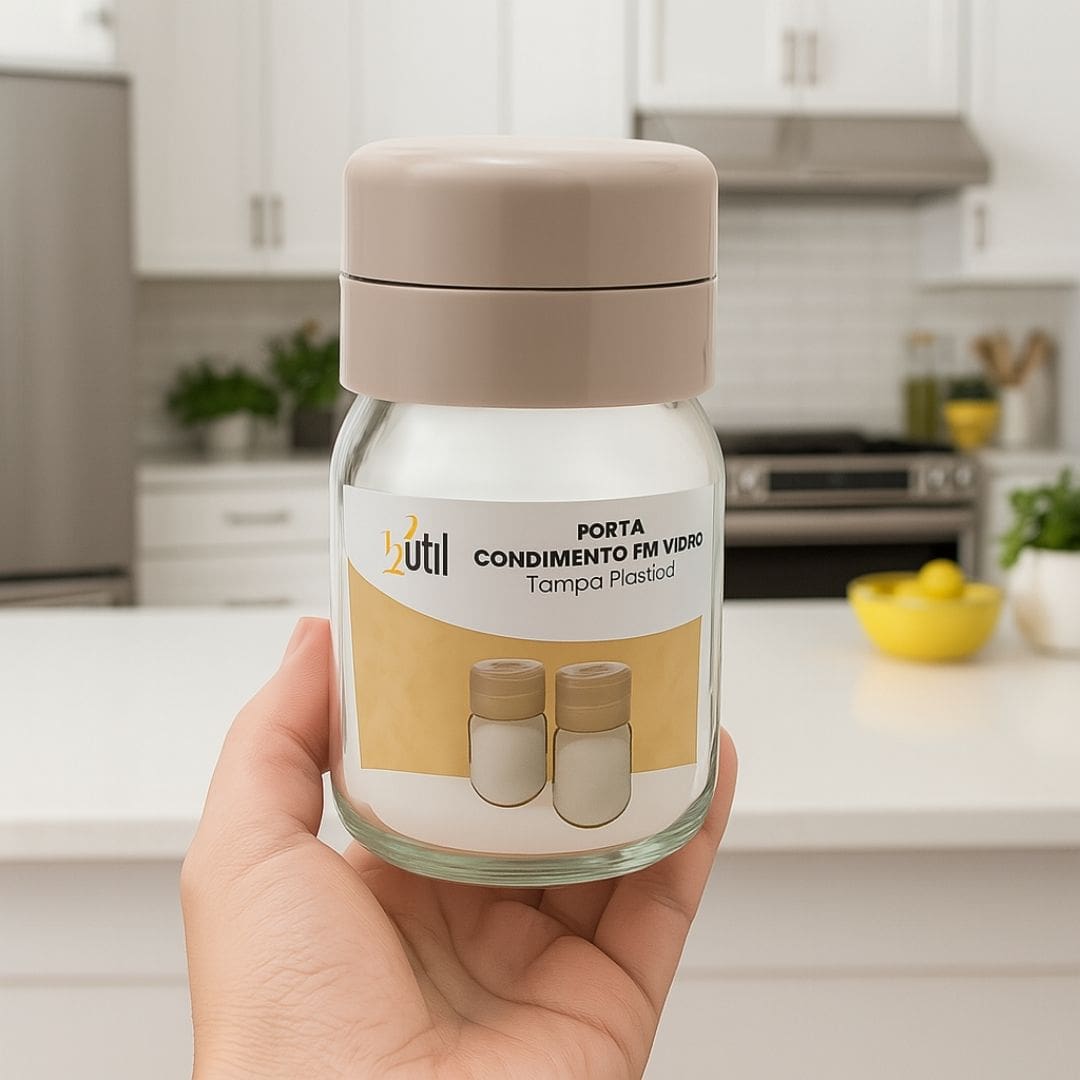 Simplifique sua vida na cozinha e adicione mais sabor aos seus pratos com o Porta Condimento 123Útil em Vidro com Tampa com 3 Aberturas de Despejo Diferentes!