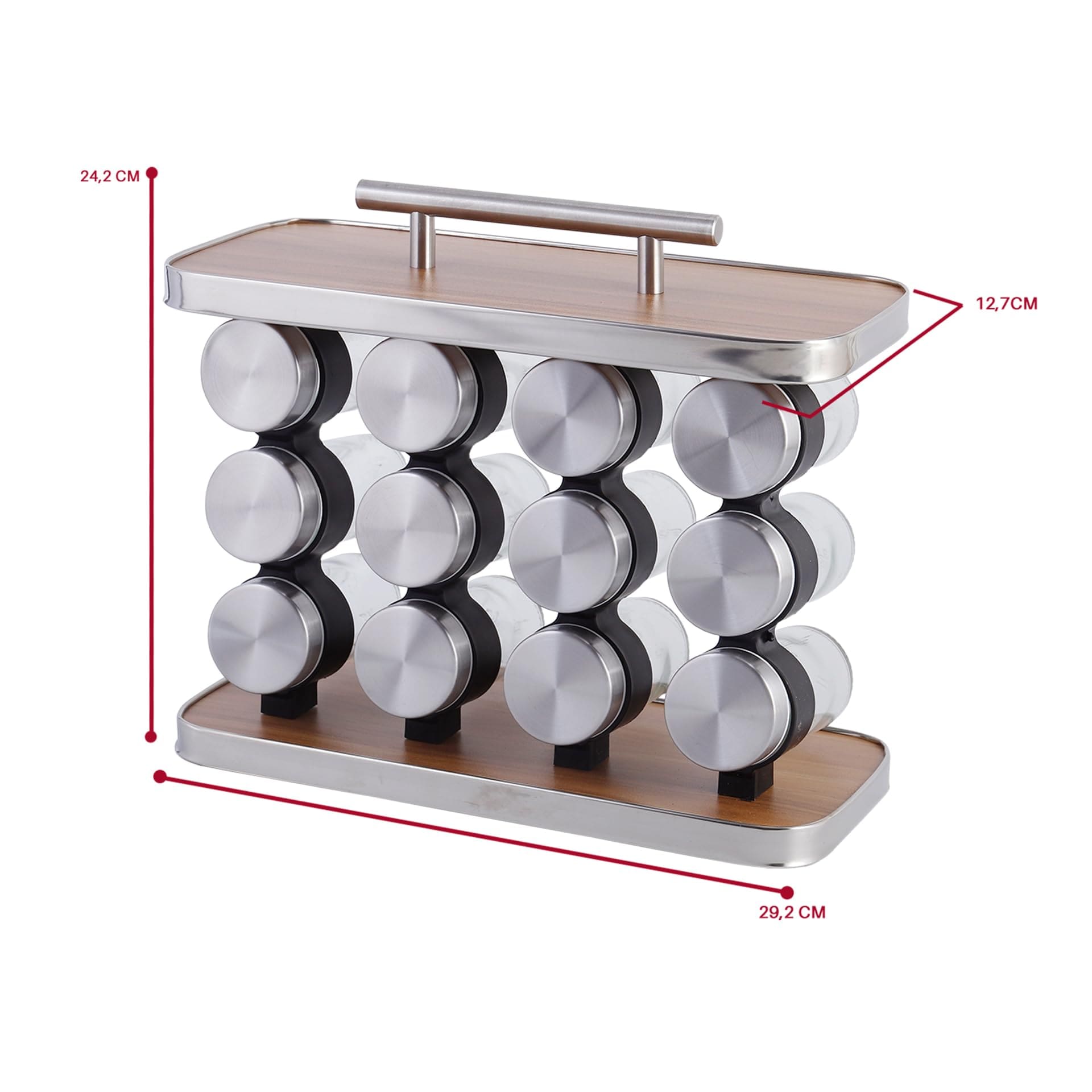 • 12 Potes de Vidro: Armazenamento seguro e elegante para uma ampla variedade de condimentos. O vidro preserva o frescor e o sabor dos temperos, além de facilitar a visualização do conteúdo.