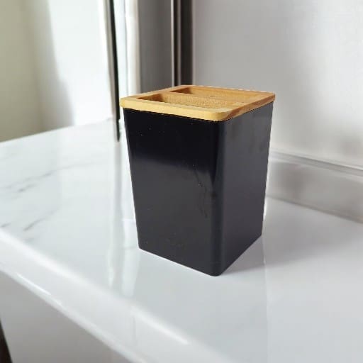- Sem tampa: Facilita o acesso às escovas e permite a ventilação, evitando o acúmulo de umidade.