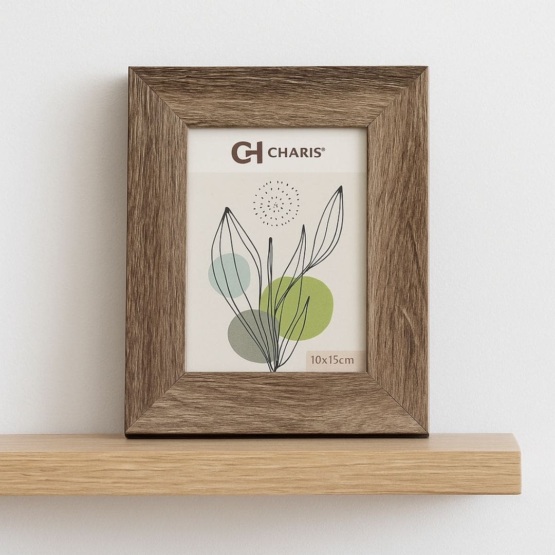 Fabricado em MDF de alta qualidade, o porta-retrato Charis apresenta um acabamento castanho elegante e versátil, que se harmoniza perfeitamente com diversos estilos de decoração, do clássico ao contemporâneo. Suas linhas limpas e minimalistas ressaltam a fotografia, tornando-a o centro das atenções sem sobrecarregar o visual.