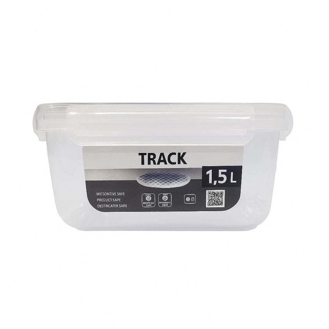 Fabricado em polipropileno (PP), um material plástico de alta resistência e livre de BPA (Bisfenol A), o Pote Track é seguro para o contato com alimentos, garantindo que não haja transferência de substâncias nocivas. Essa característica o torna adequado para uso em micro-ondas (sem a tampa), freezer e lava-louças, oferecendo máxima conveniência para o dia a dia.