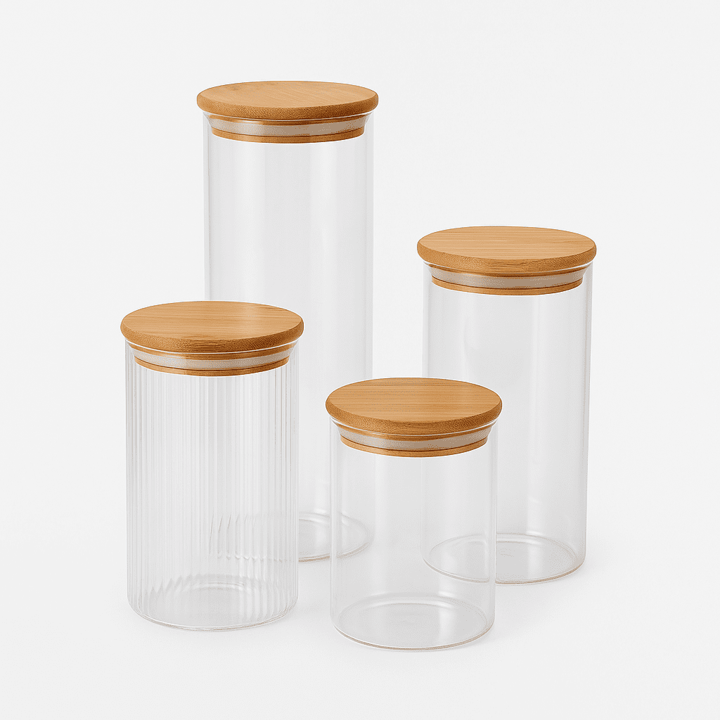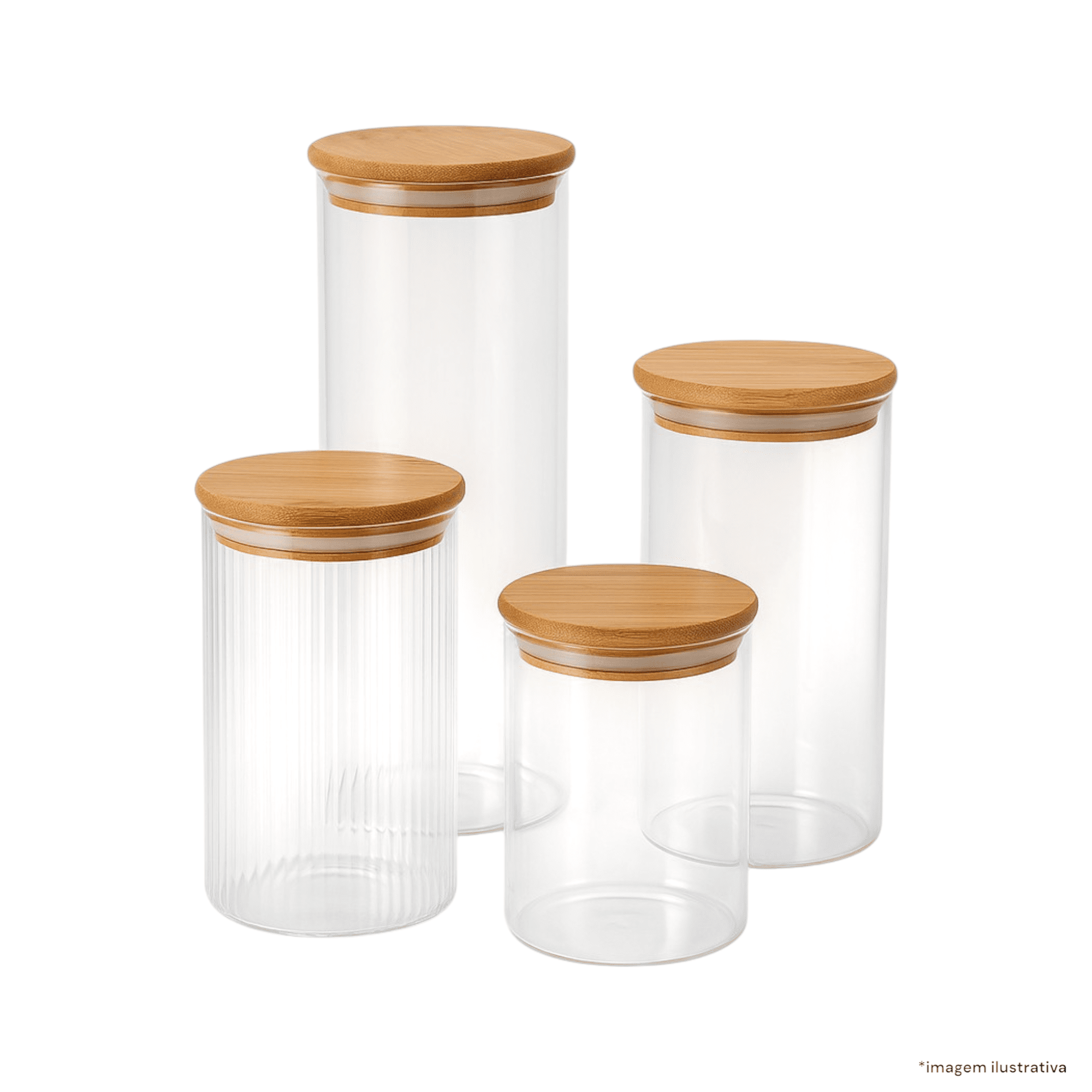 O design canelado confere um charme único e contemporâneo, elevando a estética do produto e tornando-o uma peça decorativa por si só. A tampa de bambu natural, além de ser uma escolha ecologicamente consciente e sustentável, possui um anel de vedação hermética em silicone, criando um selo perfeito que preserva o frescor, aroma e sabor dos seus mantimentos por muito mais tempo. Diga adeus aos alimentos murchos e oxidados!