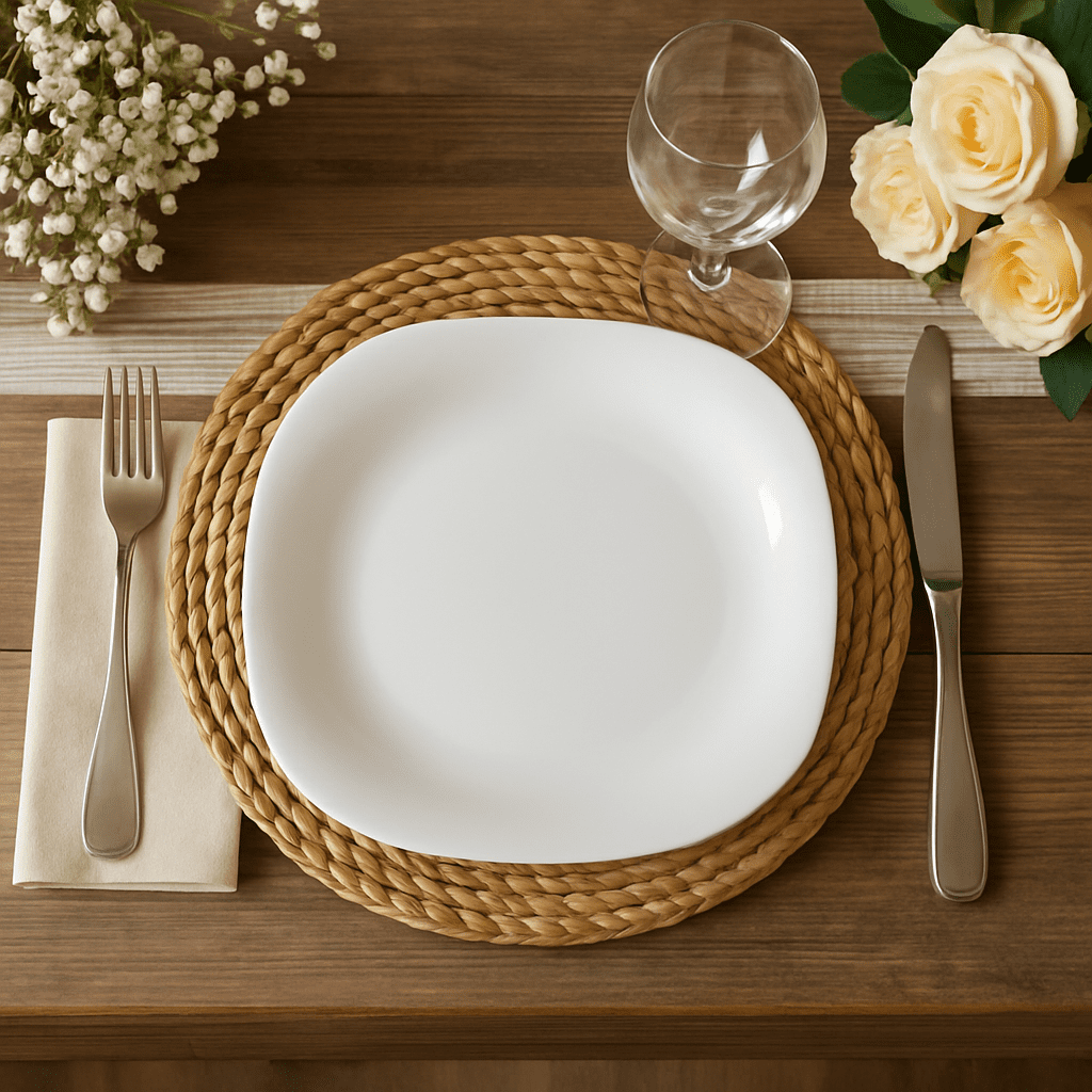 • Design Moderno e Sofisticado: Formato quadrado que confere um toque contemporâneo à sua mesa.