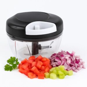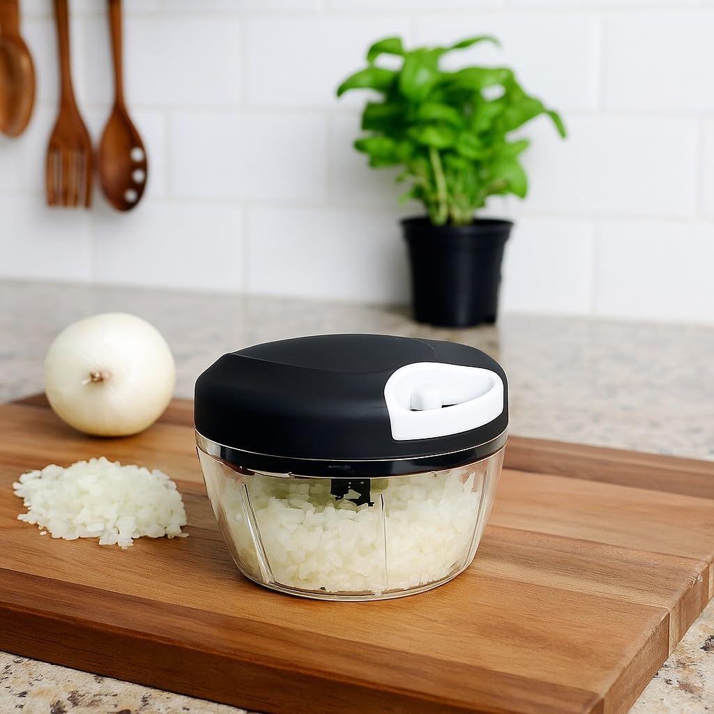 O Processador Semiautomático de Alimentos de 500ml da Original Line é o seu assistente de cozinha que tritura e pica em segundos! Equipado com 3 Lâminas afiadas em Aço Inox e um sistema de corda retrátil, ele permite processar alho, cebola, ervas e legumes sem esforço, de forma rápida e segura. Com capacidade de 500 ml, é compacto e perfeito para o dia a dia, eliminando o cheiro forte e o incômodo do corte manual!