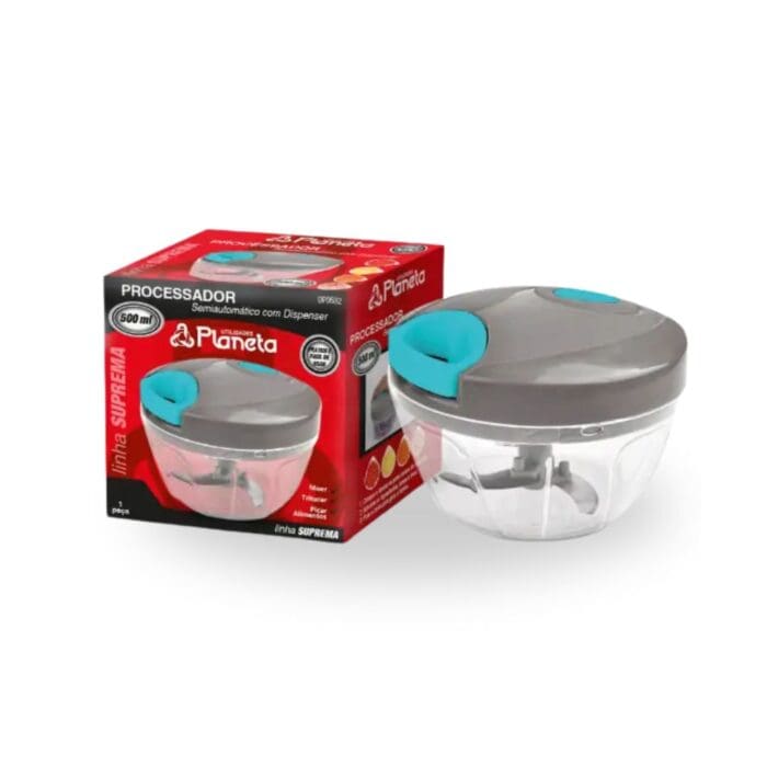 O Processador de Alimentos 500ml da Planeta Utilidades é um utensílio compacto e eficiente, ideal para preparar diversas receitas no dia a dia. Com seu design prático e funcional, ele facilita o preparo de alimentos como alho, cebola, tomate, pimentão e muito mais.