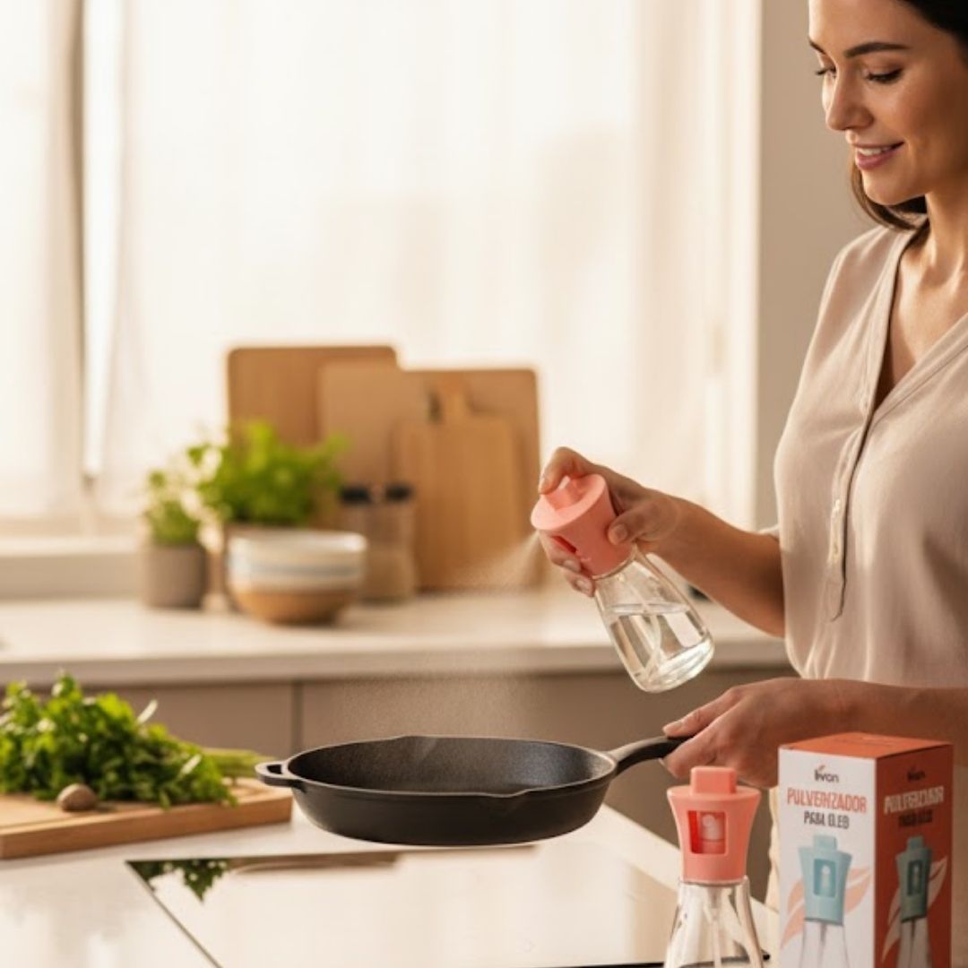 Este pulverizador é a ferramenta ideal para a redução do consumo de óleo. Em vez de despejar, você borrifa uma névoa fina e uniforme de azeite sobre seus alimentos. Isso é perfeito para: