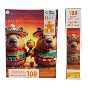 Mergulhe na diversão e no colorido do México com o Quebra-Cabeça Capivaras Mexicanas da Pais & Filhos! Este quebra-cabeça de 100 peças traz uma cena vibrante e divertida de capivaras vestidas com trajes típicos mexicanos, perfeito para toda a família.