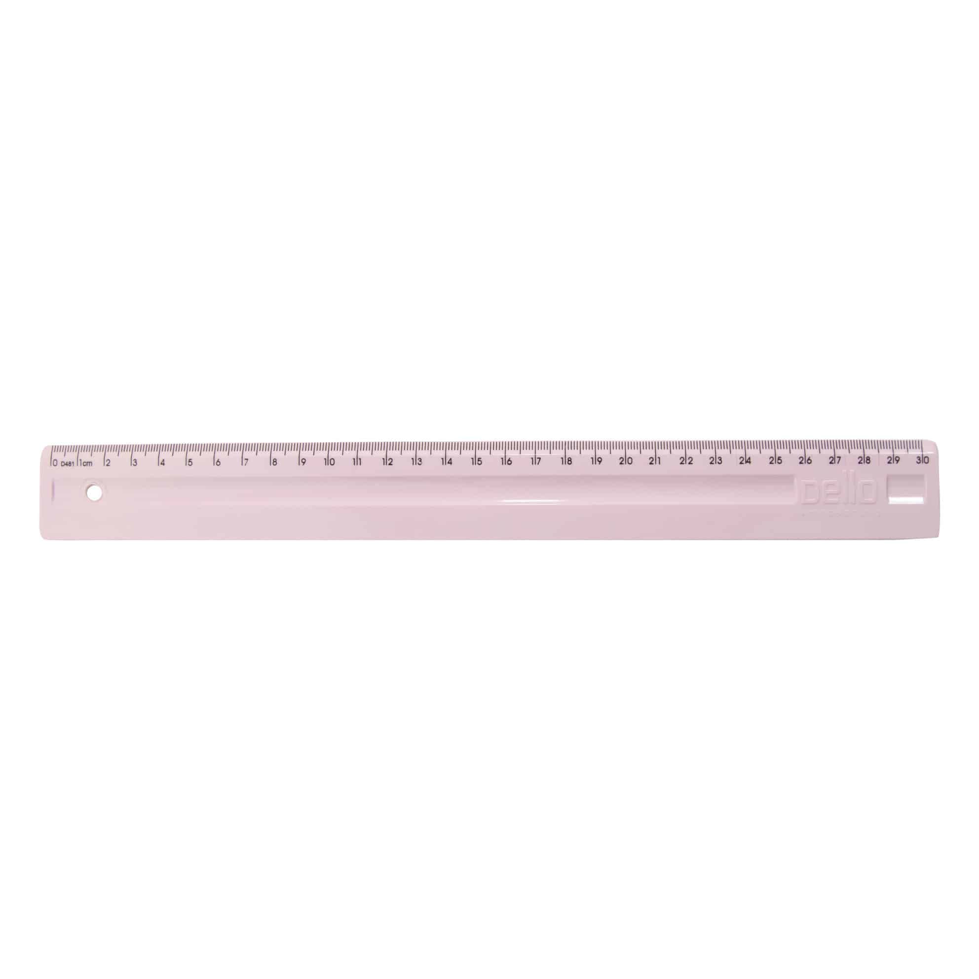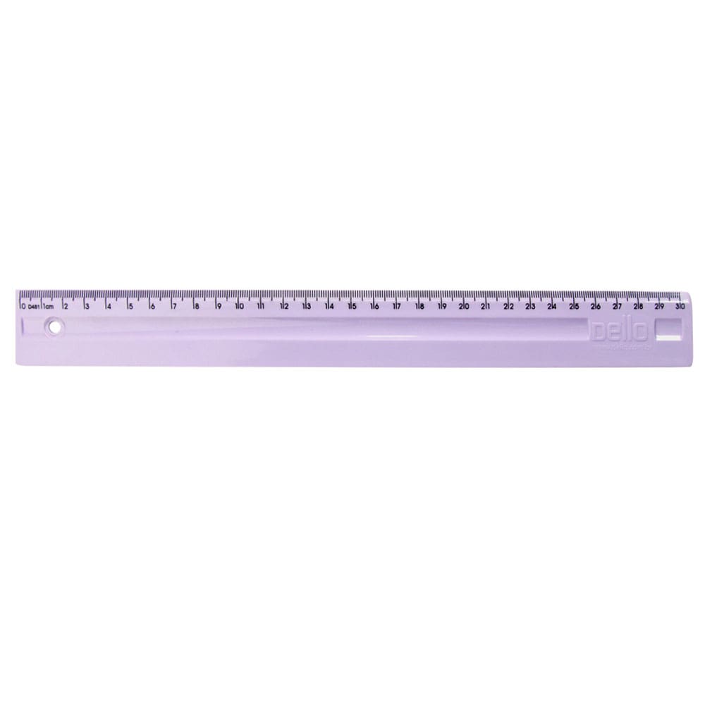 A régua de 30 cm da marca Dello é um instrumento de medição simples e útil, comumente utilizado para desenhar linhas retas, medir comprimentos e realizar atividades escolares ou profissionais.