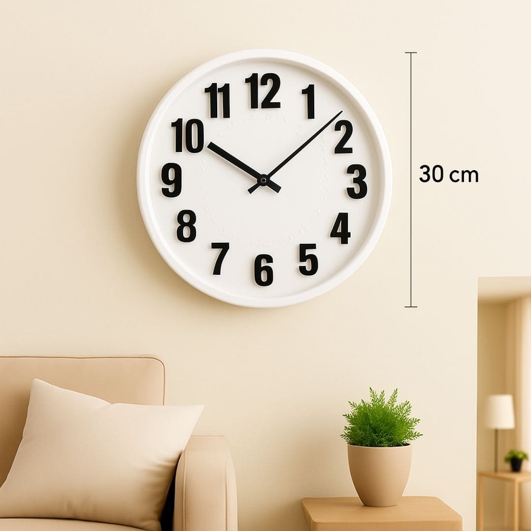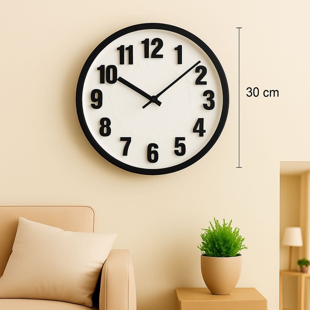 Este relógio de parede de 30cm de diâmetro é a solução ideal para quem busca praticidade e estilo na decoração de ambientes.