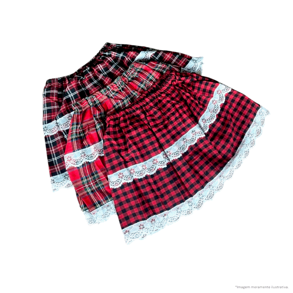 Desenvolvida com o clássico padrão xadrez, essa saia captura a essência das festas de São João, trazendo alegria e tradição para o seu look. Com um comprimento de 45cm, ela oferece a medida ideal para garantir liberdade de movimento durante as danças e brincadeiras típicas, sem abrir mão do charme.