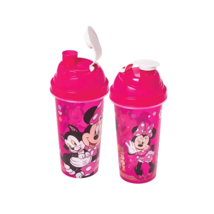 A Shakeira 580ml Minnie da marca Plasútil é uma garrafa especialmente projetada para preparar e transportar shakes, sucos ou outras bebidas.