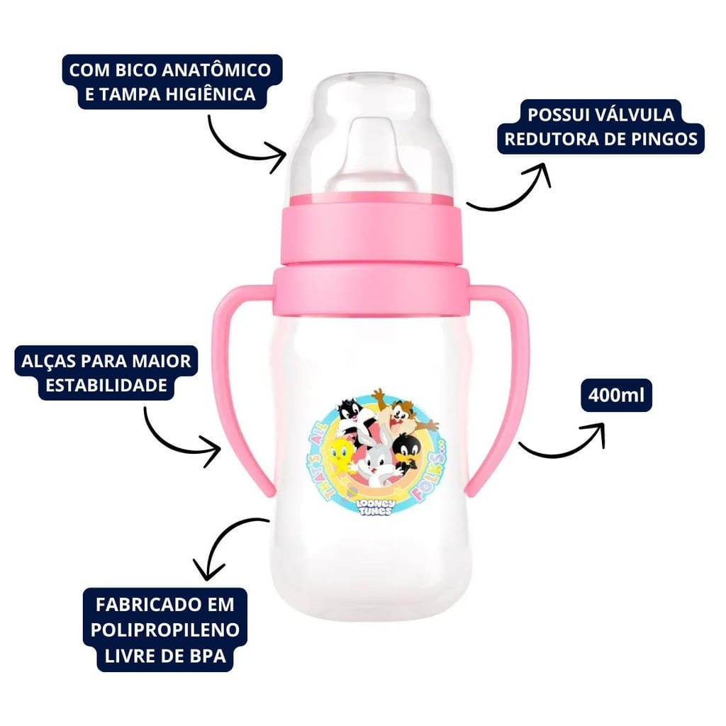 Super Copo para Treinamento com Bico Flexível e Alças Looney Tunes 400ml – BabyGo