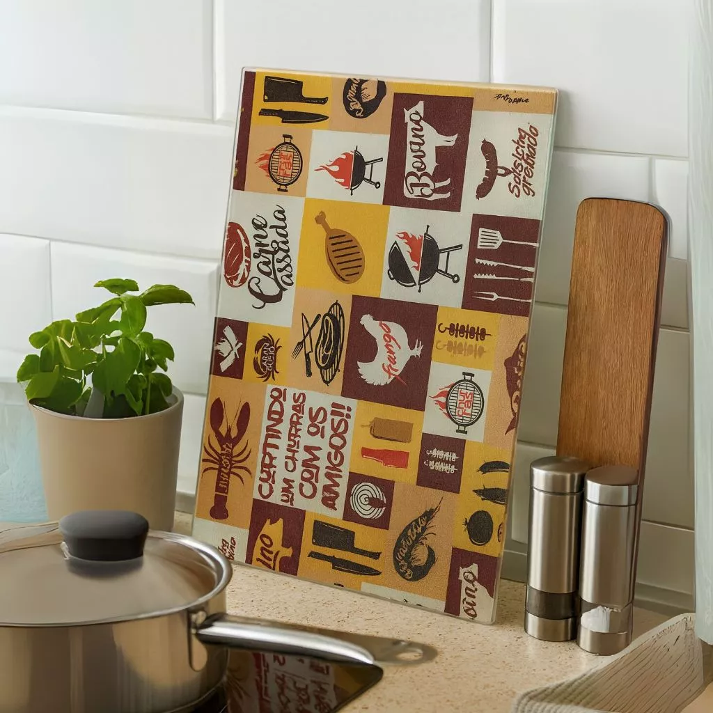 Estampas Sortidas: Cada peça é única e traz designs que variam entre temas culinários, frases motivacionais ou padrões modernos, funcionando como um item decorativo para sua bancada.