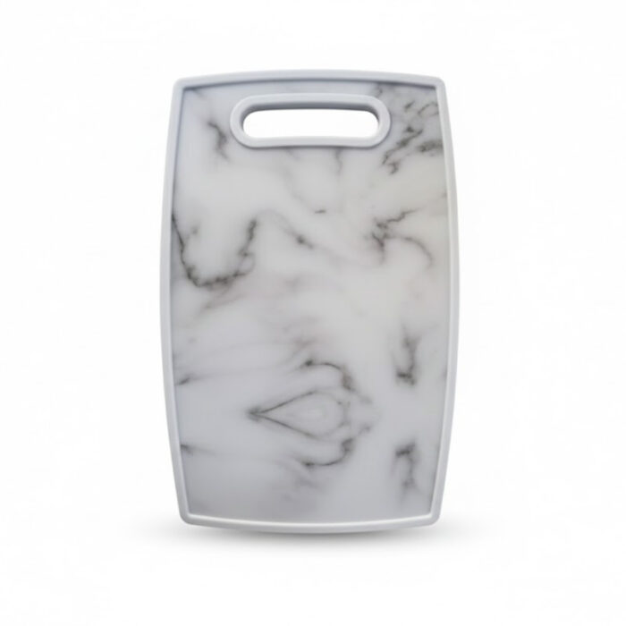 Esta Tábua de Corte é um utensílio prático e com design inteligente, medindo 30 centímetros de comprimento por 20 centímetros de largura. Ela é construída com uma base de MDF que garante estabilidade e durabilidade, e uma superfície de corte feita em plástico (Polipropileno ou material similar).