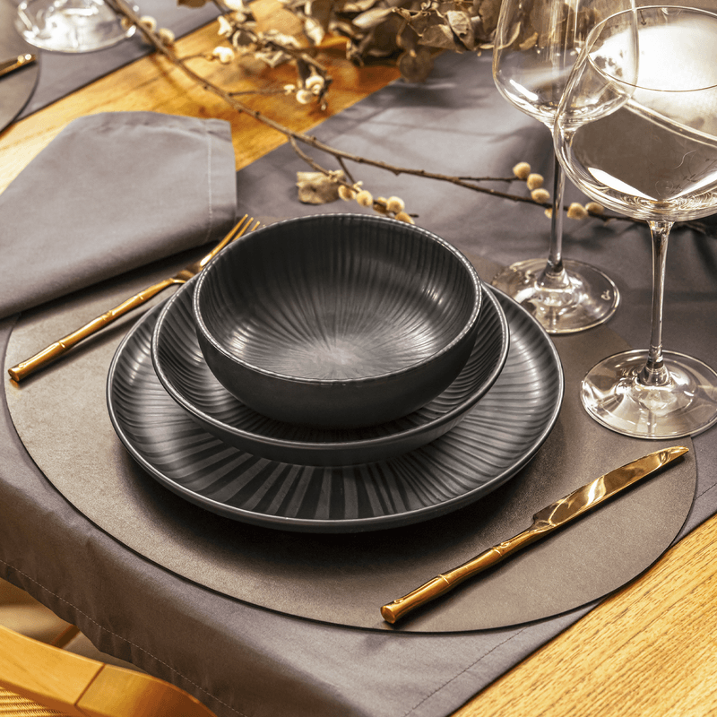 • Inspiração na natureza: A cor preta e as linhas em alto relevo, que imitam as veias da pedra ônix, trazem um toque de natureza e sofisticação para a sua mesa.