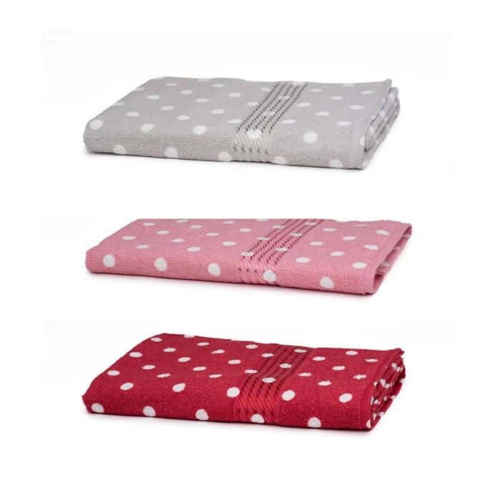 Esta toalha é ideal para quem busca um produto prático, com boa absorção e um design que se destaca pela suavidade das cores e pelo padrão de bolinhas, que adiciona um toque de charme ao banheiro.